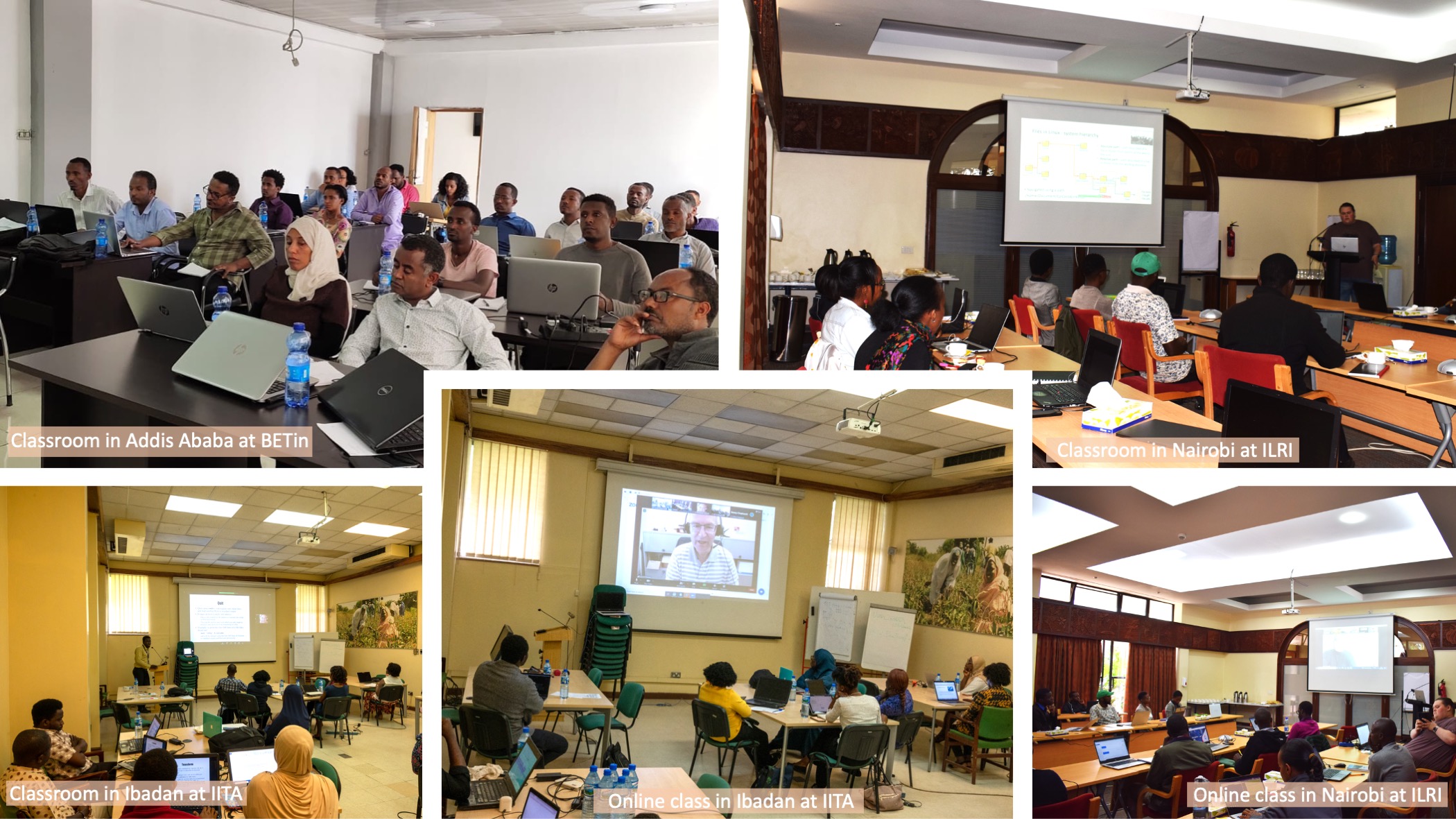 EpiCass and CassavaNet4Dev are collaborative projects funded by the Swedish Research Council between the Swedish University of Agriculture (SLU) and the International Institute of Tropical Agriculture (IITA). The projects aim to investigate the influence of epigenetic changes on agricultural traits such as yield and virus resistance while also providing African students and researchers with advanced bioinformatics training and opportunities to participate in big data analysis events. The first advanced bioinformatics training workshop took place from May 16th to May 18th, 2022, followed by an online mini-symposium titled "Epigenetics and crop improvement" on May 19th. The symposium featured international speakers covering a wide range of topics related to plant epigenetics, cassava viral diseases, and cassava breeding strategies. A new online and on-site teaching concept was developed for the three-day workshop to ensure maximum student participation across Western, Eastern, and Southern Africa. Initially planned in Nigeria, Kenya, Ethiopia, Tanzania, and Zambia, the workshop ultimately focused on Nigeria, Kenya, and Ethiopia due to a lack of qualified candidates in the other countries. Each classroom hosted 20 to 25 students, with at least one bioinformatician present for support. The classrooms were connected via video conferencing, whereas teachers located in different places in Africa and Europe joined the video stream to conduct teaching sessions. The workshop was divided into theoretical classes and hands-on sessions, where participants could run data analysis with support from online teachers and local bioinformaticians. To enable participants to run guided, CPU and RAM-intensive data analysis workflows and overcome local computing and internet access restrictions, a system of virtual machines (VMs) hosted in the cloud was developed. The teaching platform provided teaching and exercise materials to support the use of the VMs. Although some students could not run heavy data analysis workflows due to unforeseen restrictions in the cloud, these issues were solved. All participants had the opportunity to run the analysis steps independently in the cloud using the protocols hosted on the teaching platform.