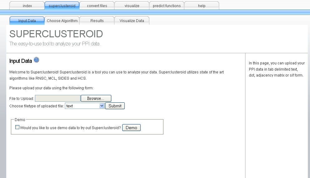 Superclusteroid: a Web tool dedicated to data processing of protein-protein interaction networks